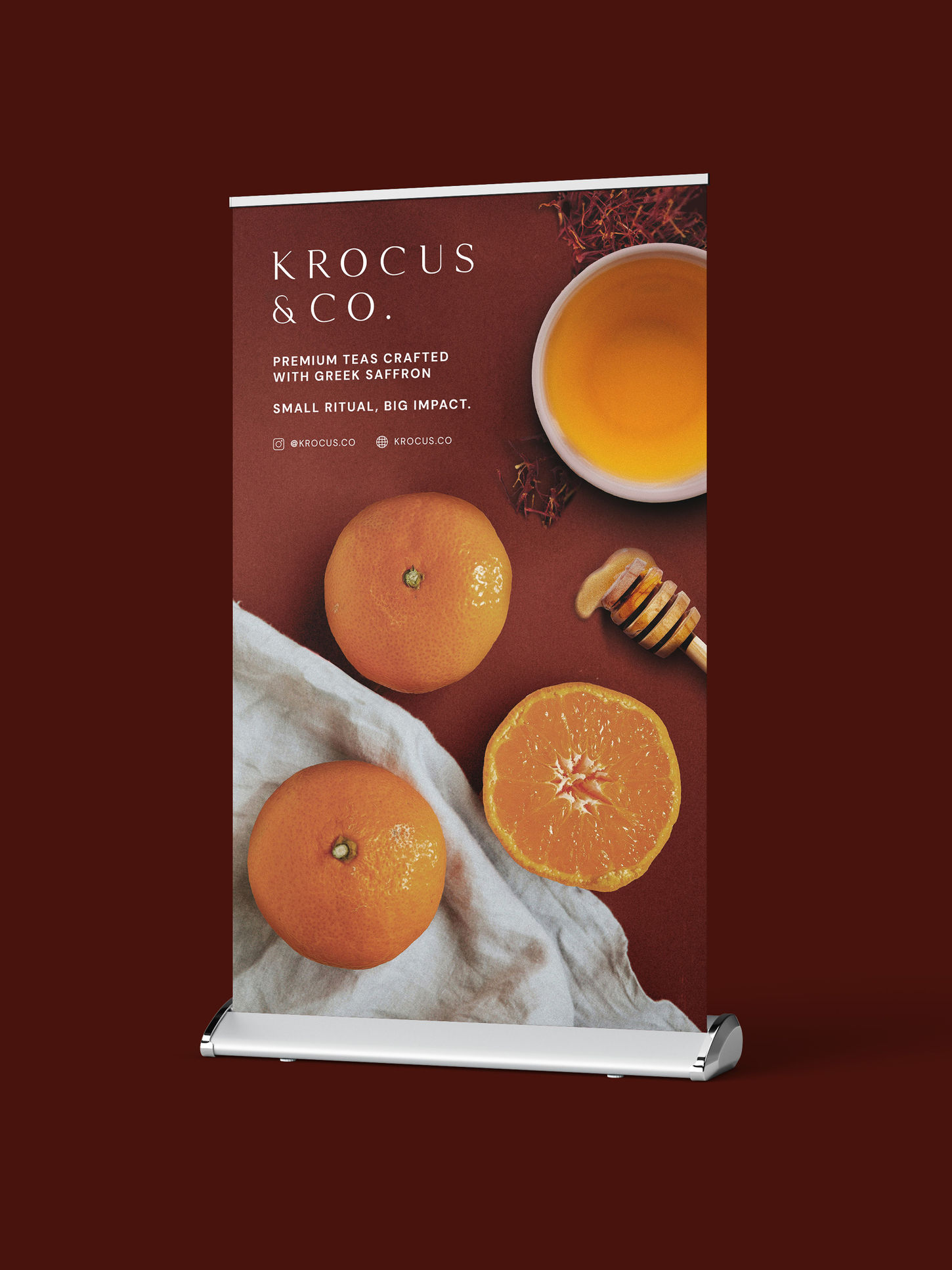 Design and production of a range of marketing and sales materials to promote the teas and articulate the brand’s core values and offerings. From postcards and flyers to eye-catching trade show stands, each piece was designed to reflect Krocus & Co.’s premium positioning and commitment to well-being, quality, and sustainability.